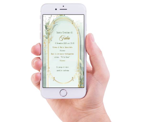 Invito Santa Cresima formato digitale pronto da inviare ai vostri invitati tramite whatsApp, o email.