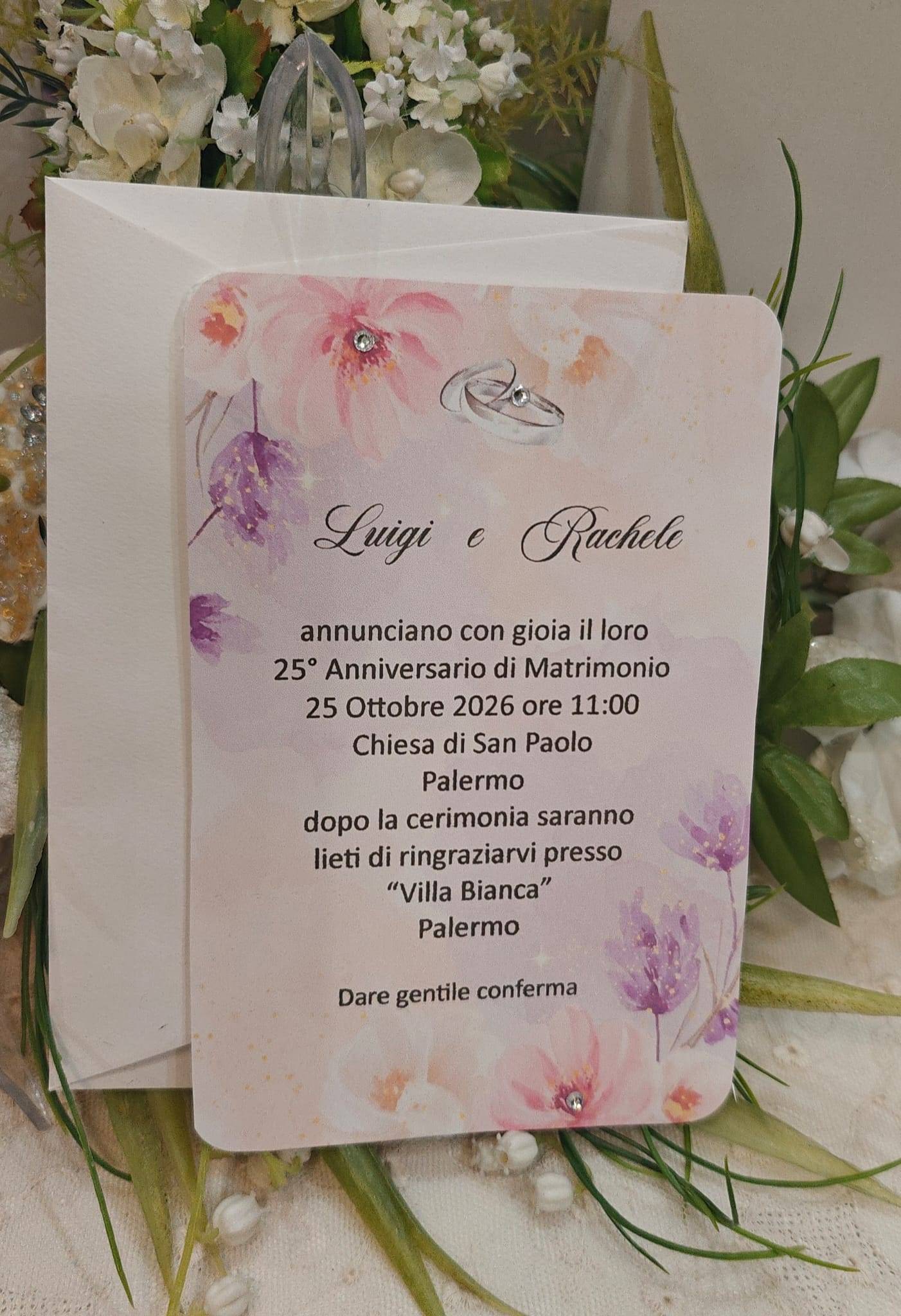 INVITO NOZZE 25° ANNIVERSARIO FIORI GLICINE