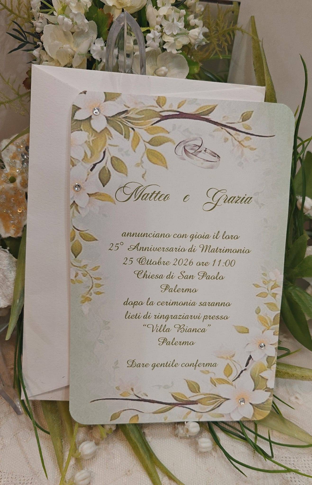 INVITO NOZZE 25° ANNIVERSARIO FIORI VERDI