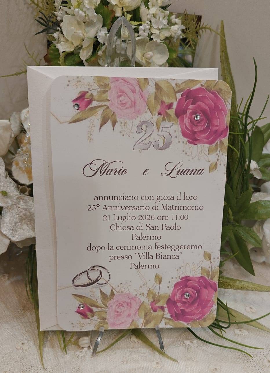 INVITO NOZZE 25° ANNIVERSARIO ROSE ROSSE
