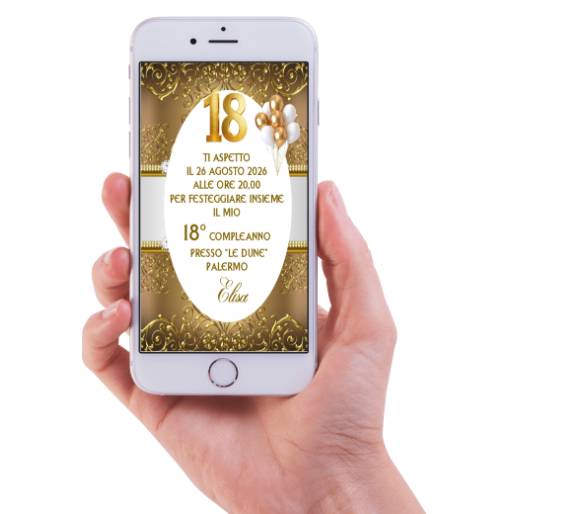 Invito Digitale 18 anni in formato digitale pronto da inviare ai vostri invitati tramite whatsapp, o email.