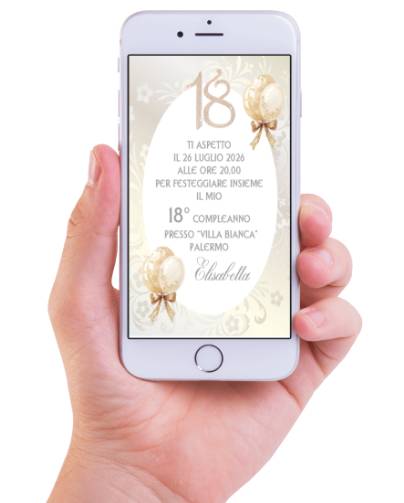 Invito Digitale 18 anni in formato digitale pronto da inviare ai vostri invitati tramite whatsapp, o email.