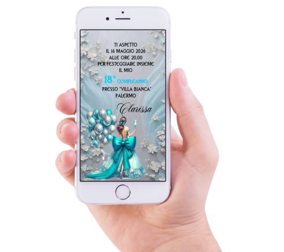 Invito Digitale 18 anni in formato digitale pronto da inviare ai vostri invitati tramite whatsapp, o email.