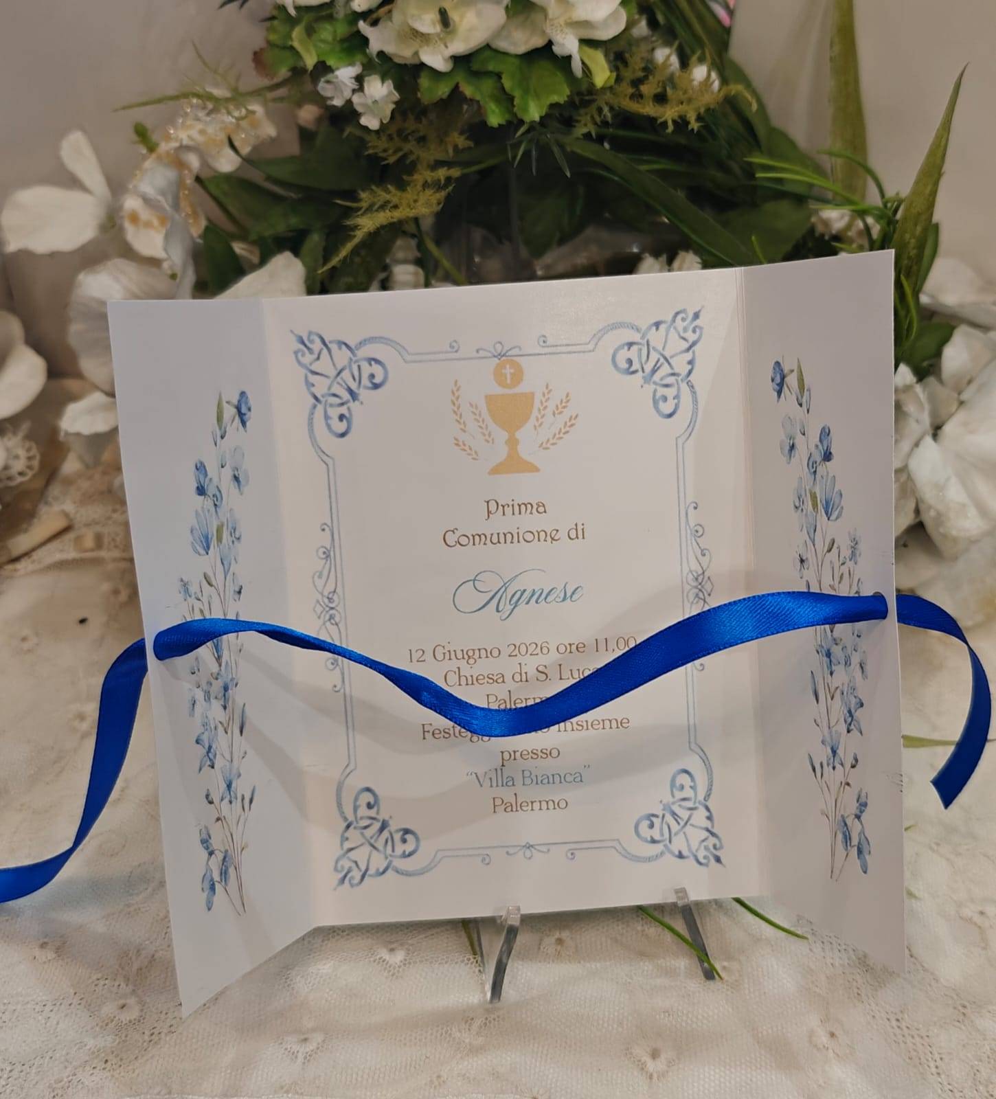 Invito Prima Comunione personalizzato con chiusura con nastrino