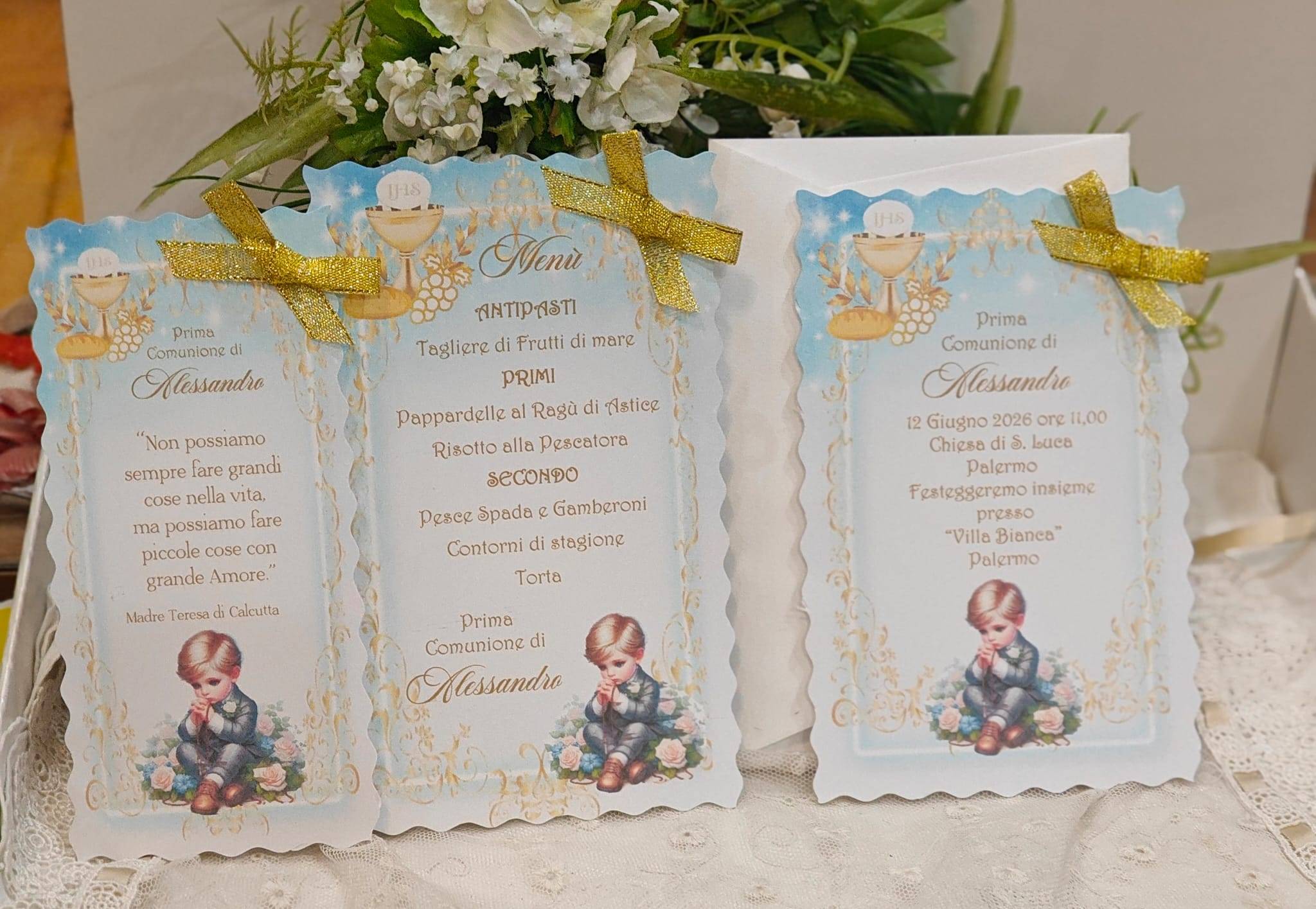INVITO PRIMA COMUNIONE RAGAZZO CON BUSTA