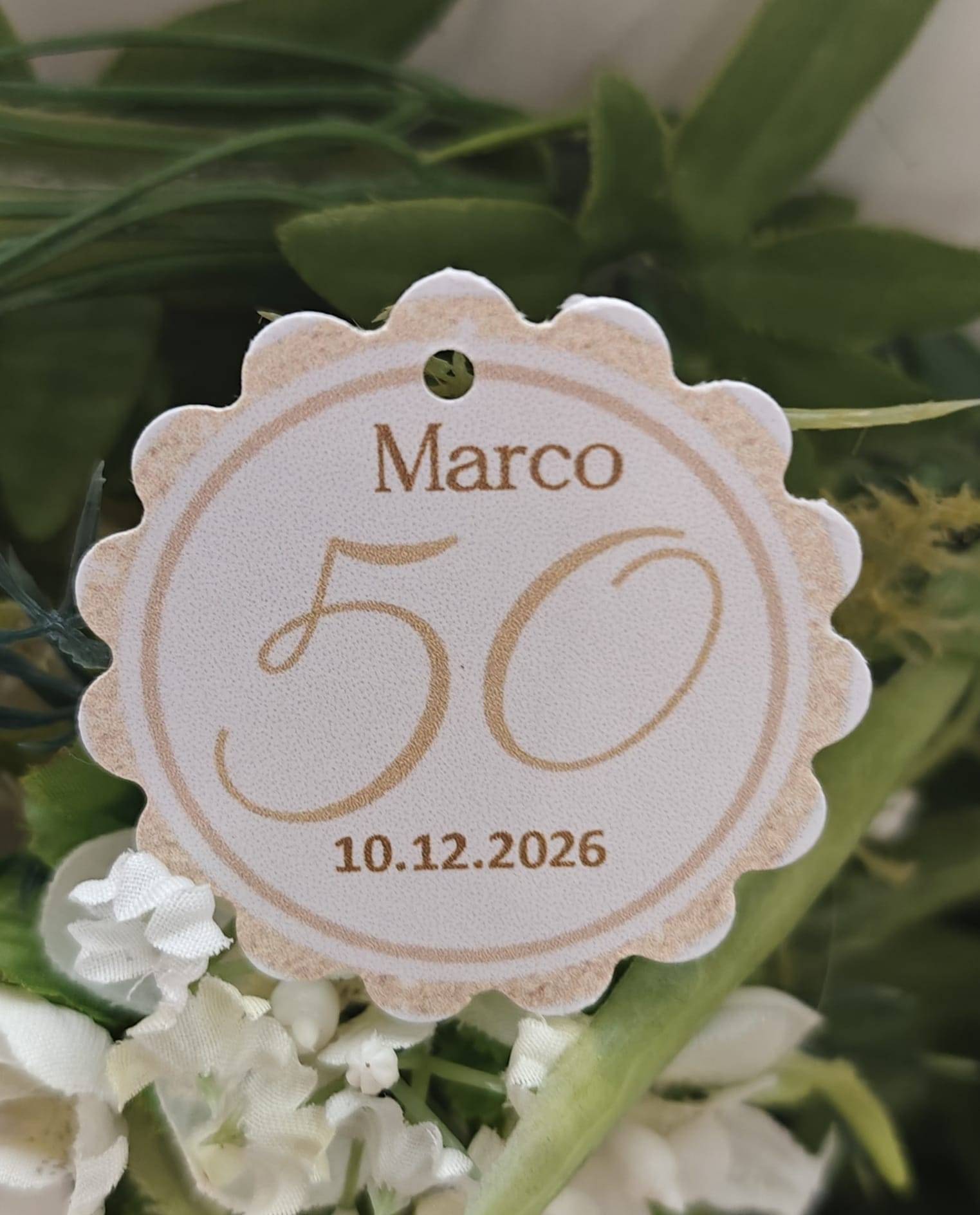 Bigliettino rotondo personalizzato per Compleanno da attaccare alla bomboniera,