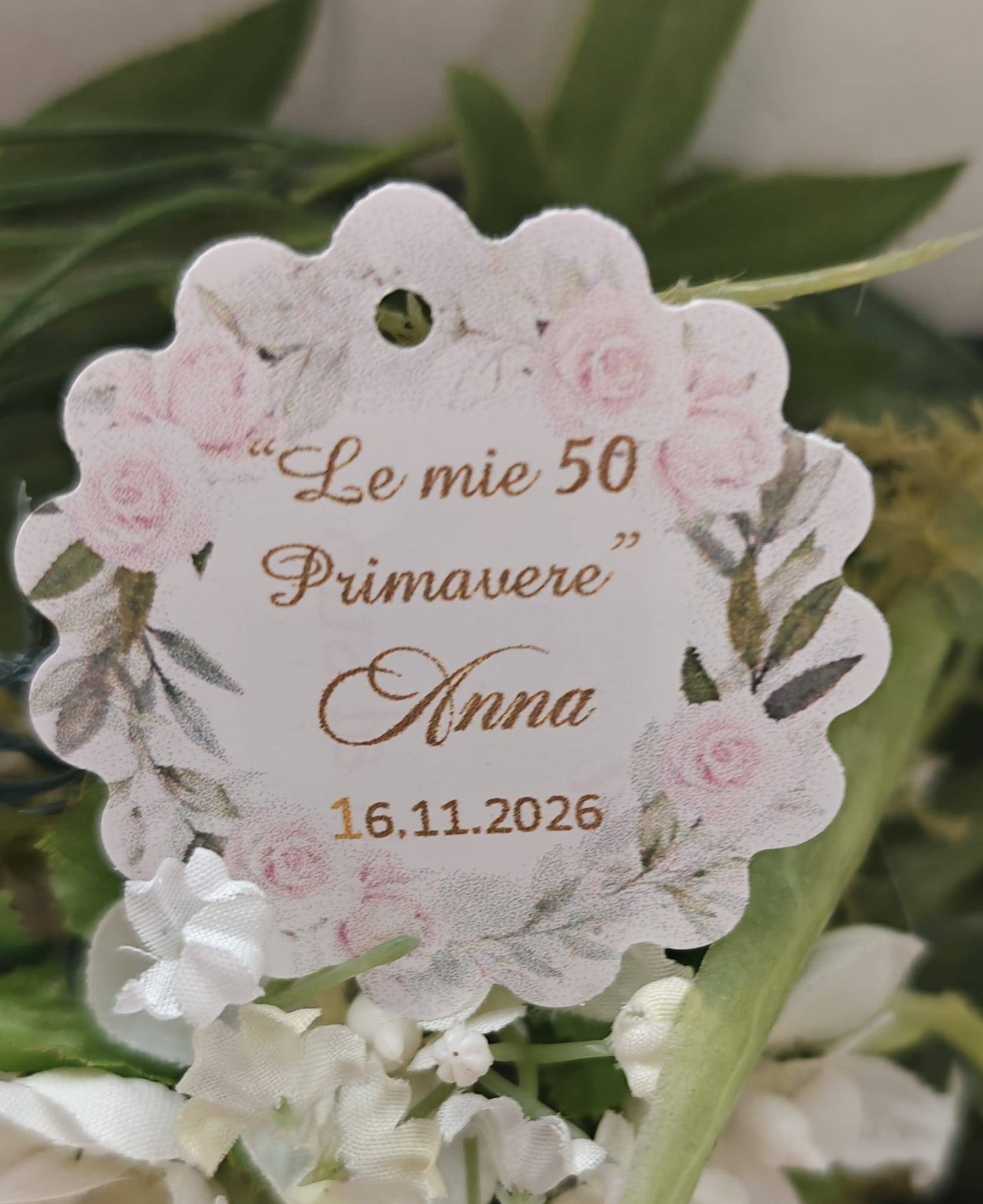 Bigliettino rotondo personalizzato per Compleanno da attaccare alla bomboniera,