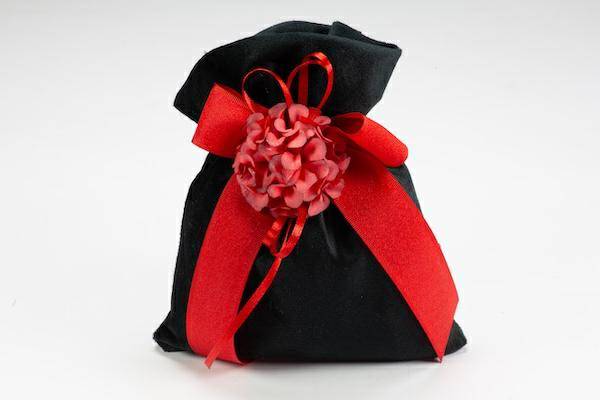 Sacchetto laurea in velluto nero completo di confetti cm 14 x 18