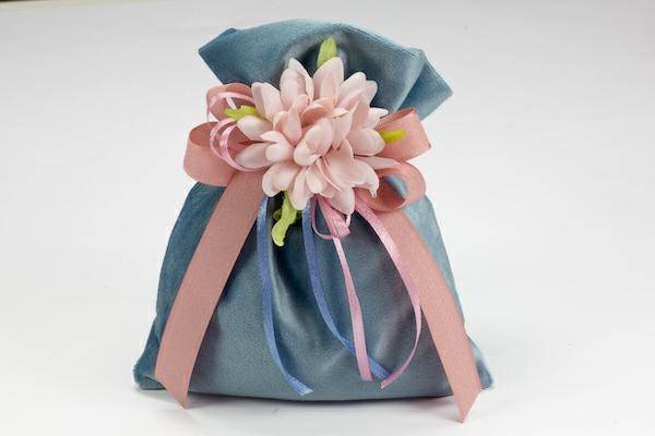 Sacchetto MATRIMONIO in velluto carta di zucchero completo di confetti cm 14 x 18