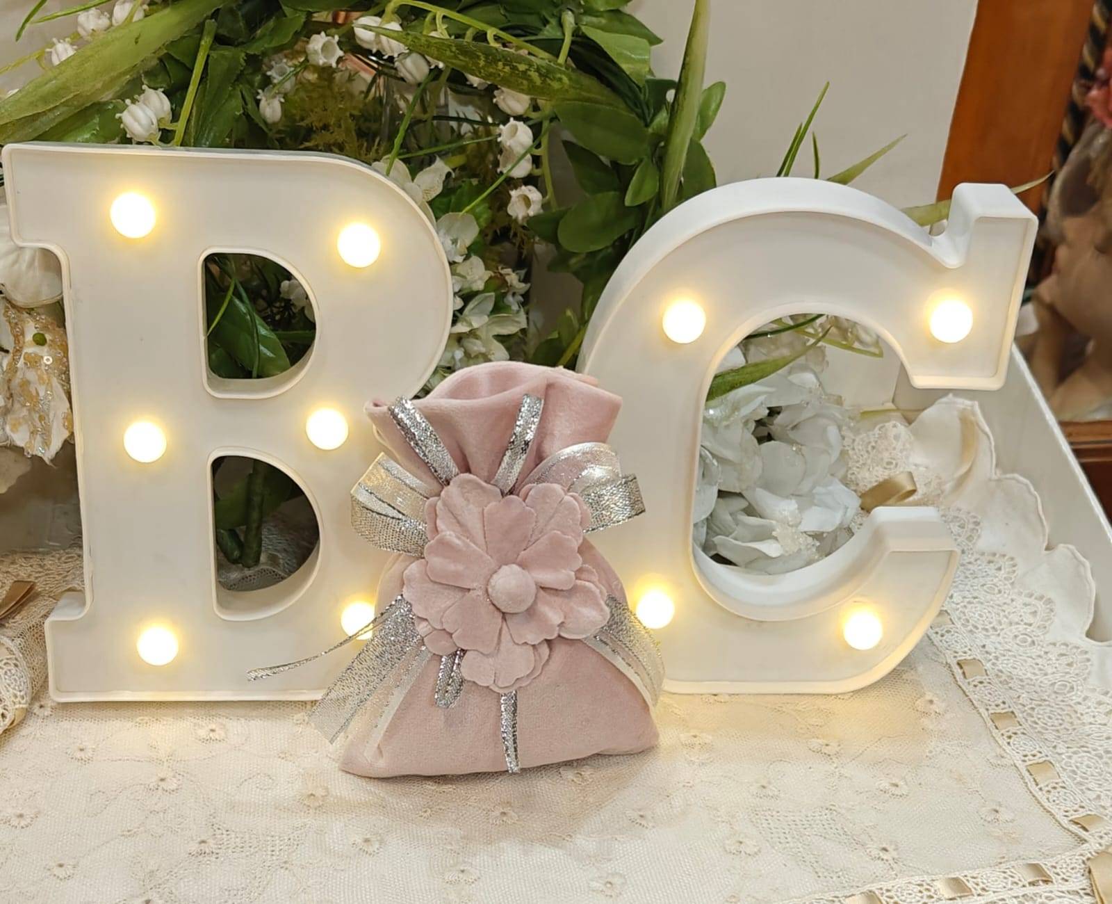 SACCHETTO COMPLEANNO VELLUTO ROSA ANTICO