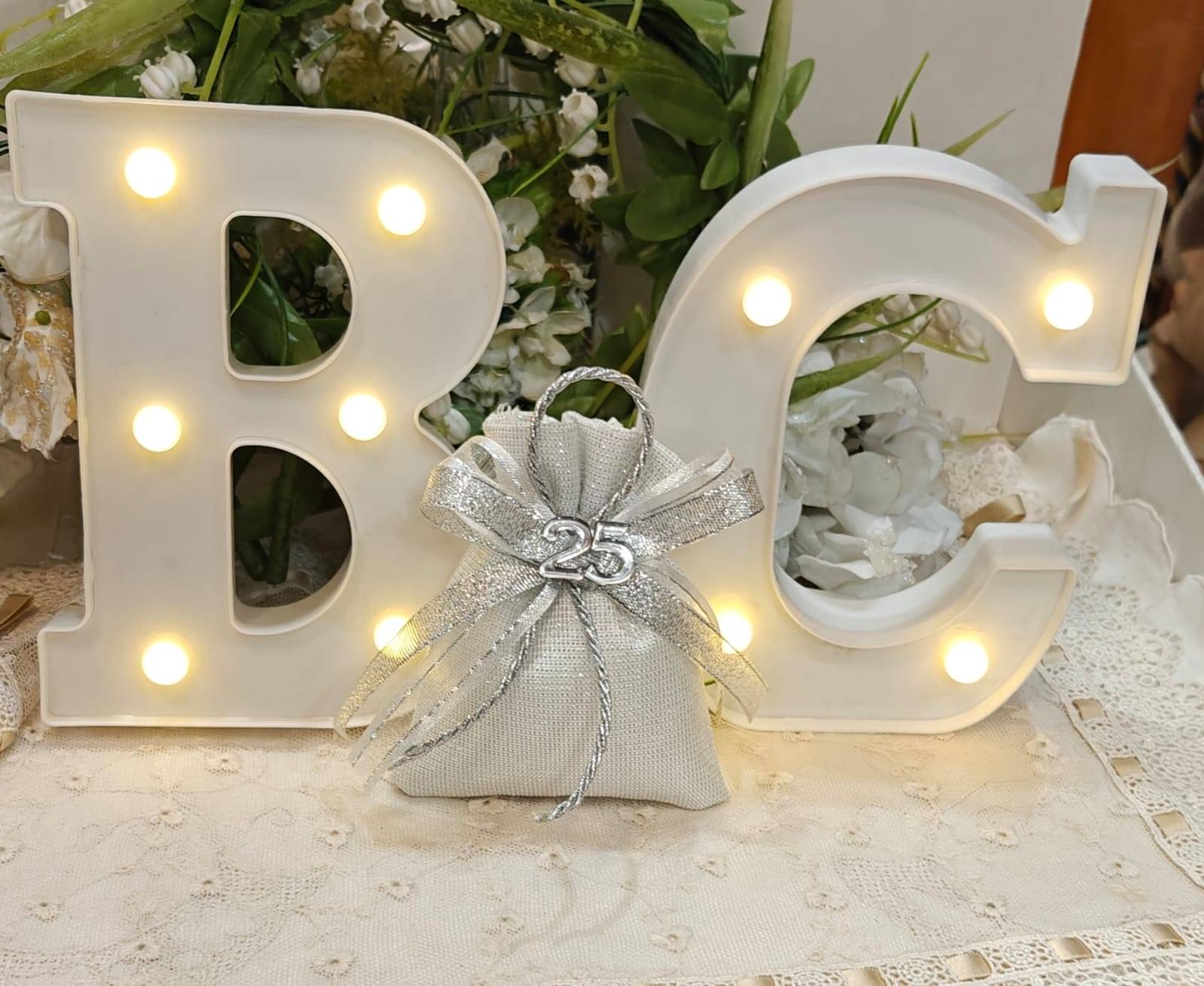 Sacchetto Lurex nozze d'argento completo di confetti cm 10 x 13