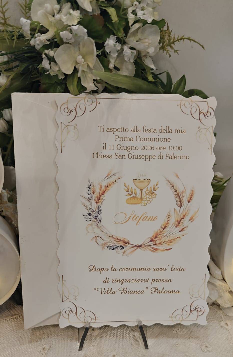 INVITO PRIMA COMUNIONE CON SPIGHE E BUSTA