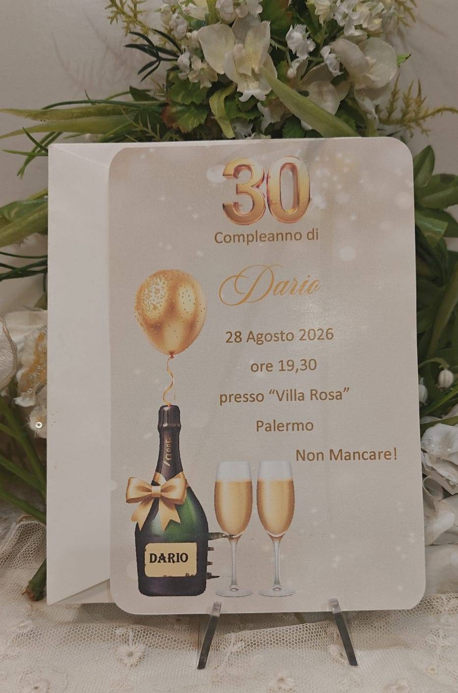 Invito personalizzato Compleanno 30 anni. Realizzato in cartoncino lucido gr. 200.