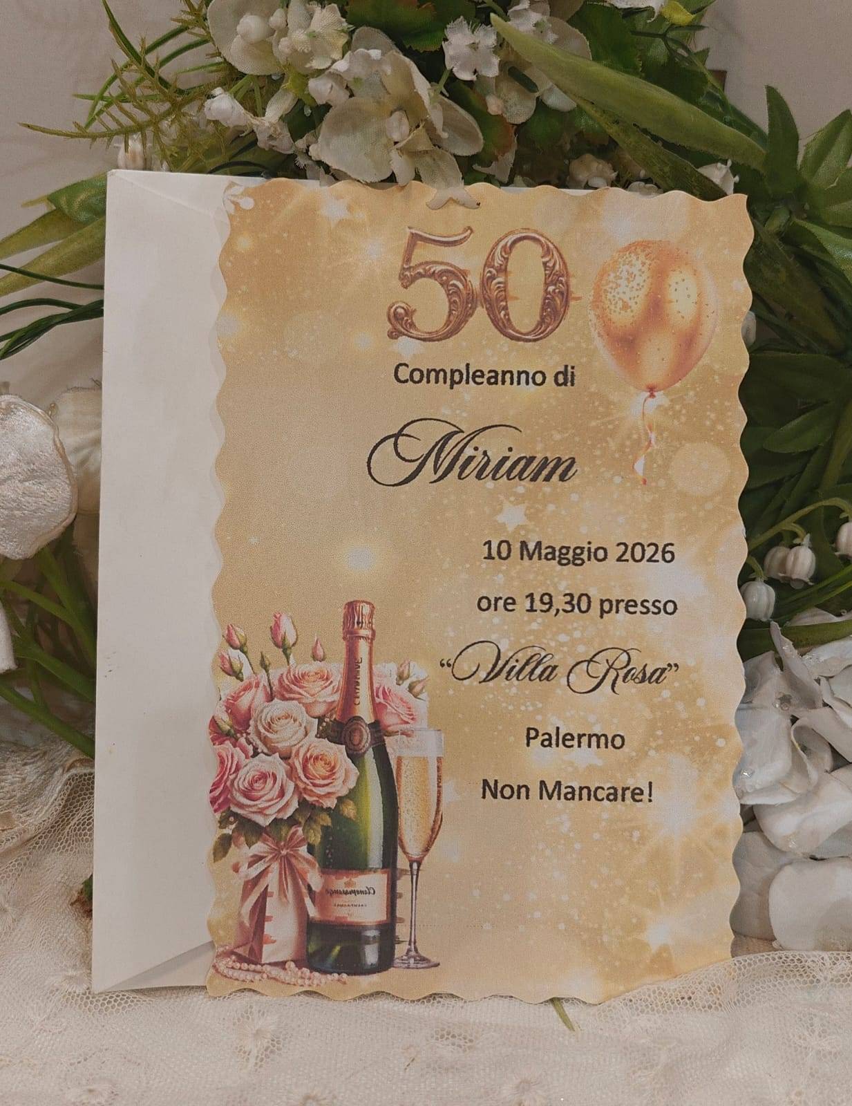 Invito personalizzato Compleanno 50 anni. Realizzato in cartoncino lucido gr. 200.