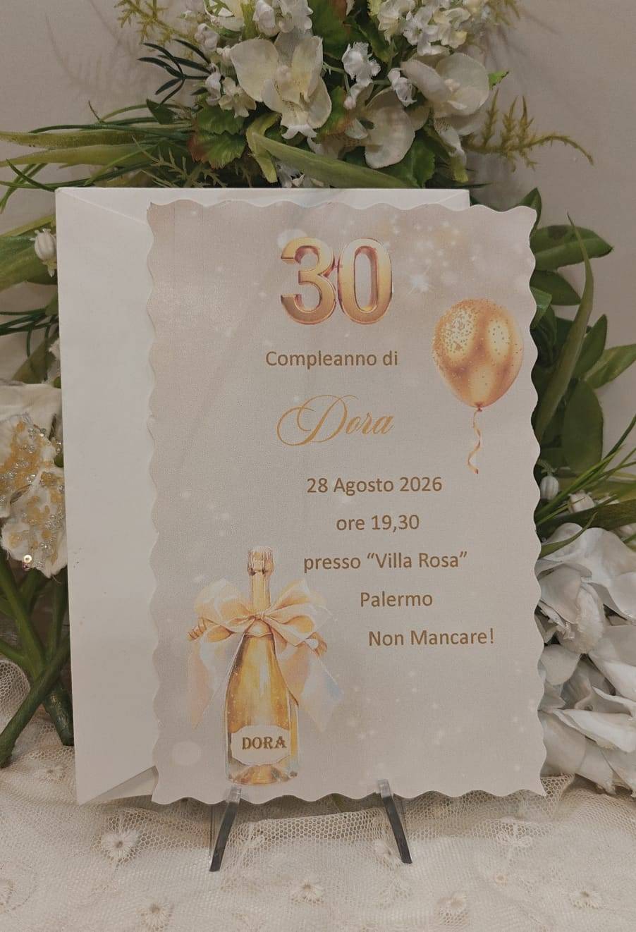 Invito personalizzato Compleanno 30 anni. Realizzato in cartoncino lucido gr. 200.