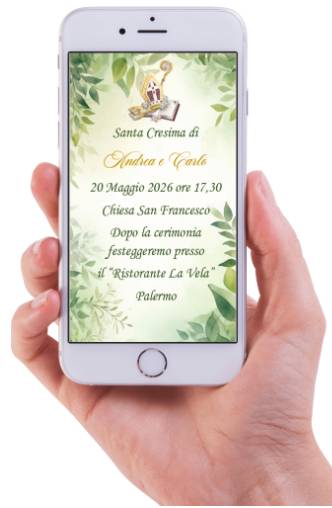 Invito Santa Cresima formato digitale pronto da inviare ai vostri invitati tramite whatsApp, o email.