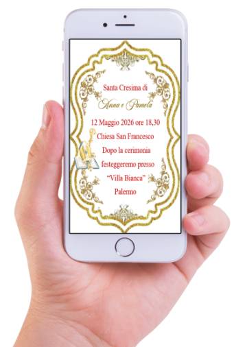 Invito Santa Cresima formato digitale pronto da inviare ai vostri invitati tramite whatsApp, o email.