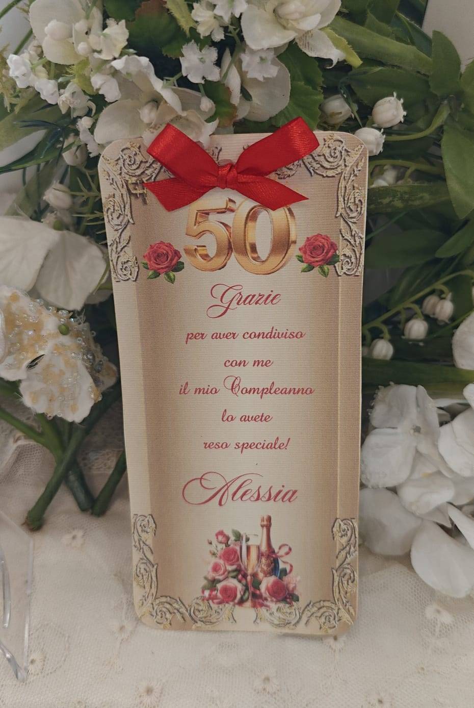 Invito personalizzato Compleanno 50 anni. Realizzato in cartoncino lucido gr. 200.