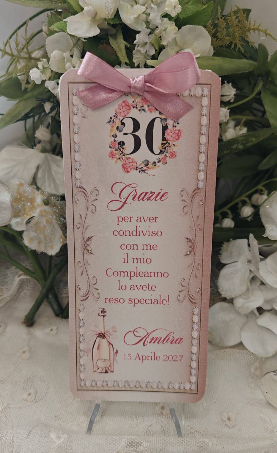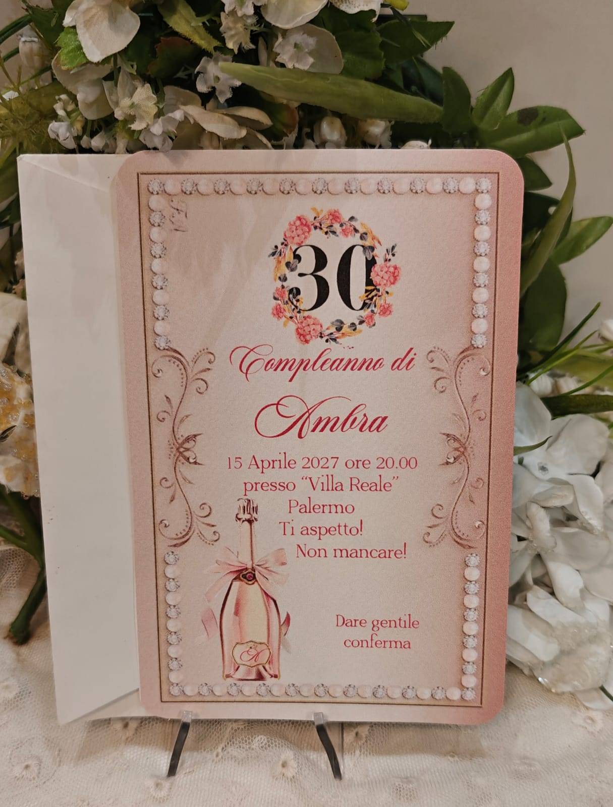 Invito personalizzato Compleanno 30 anni. Realizzato in cartoncino lucido gr. 200.