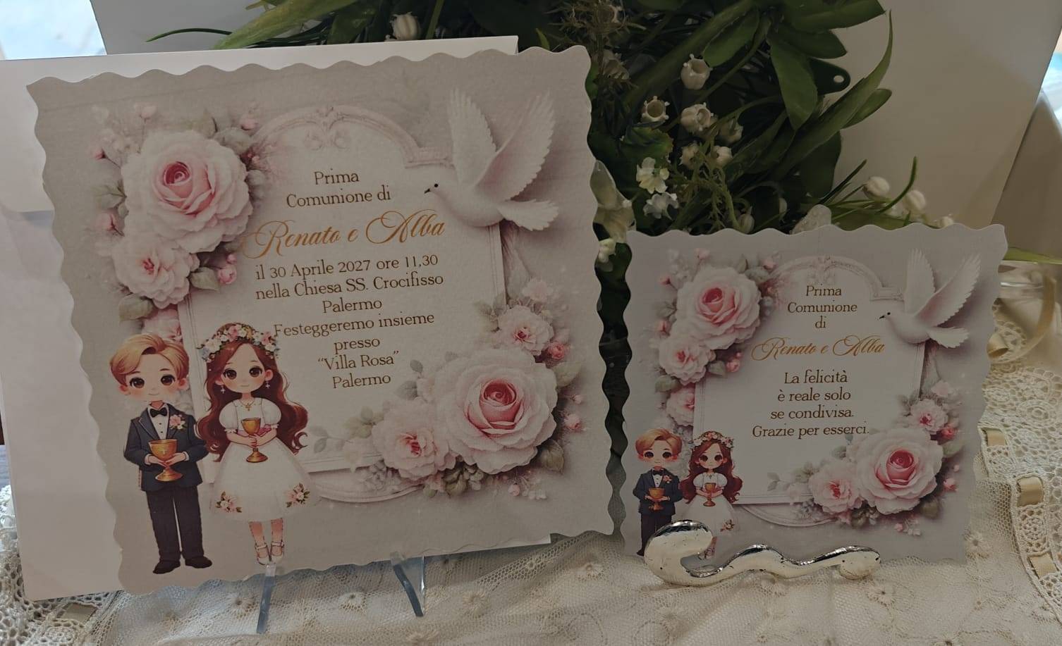 INVITO PRIMA COMUNIONE FRATELLI CON ROSE