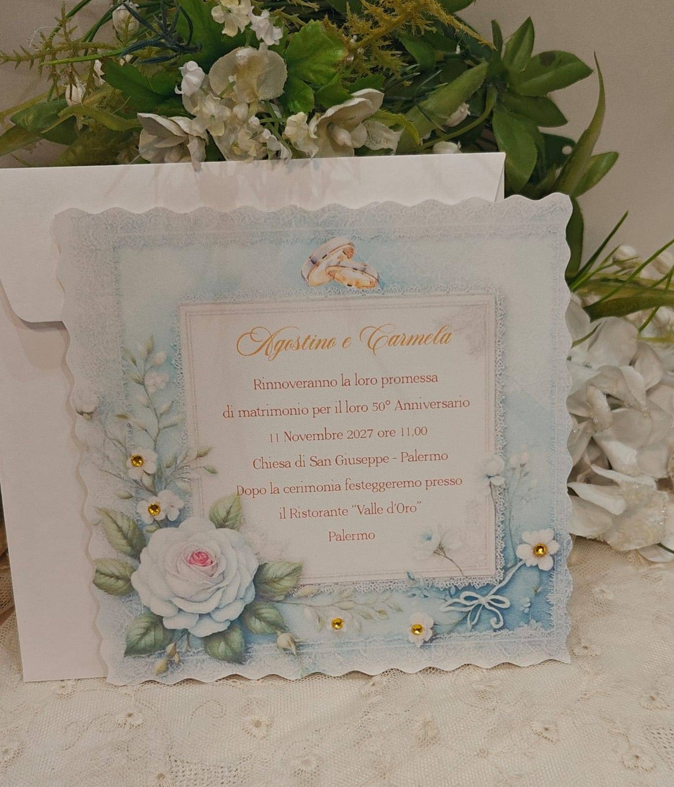 Invito Nozze d'oro con busta e stampa gratis cm 16,5 x 16,5