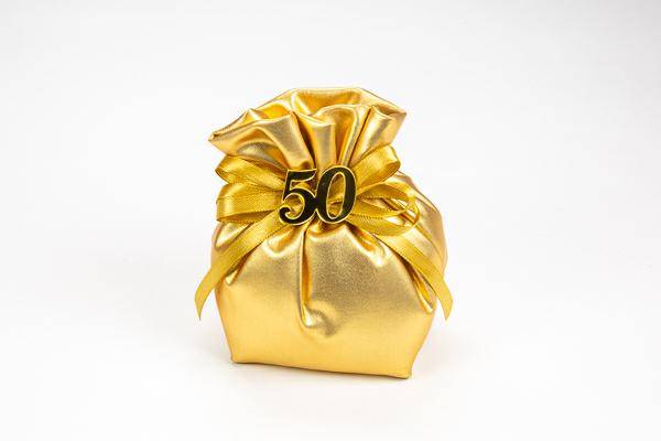 Sacchetto LUREX ORO cm.13 x 11 con applicazione 50 completo di confetti