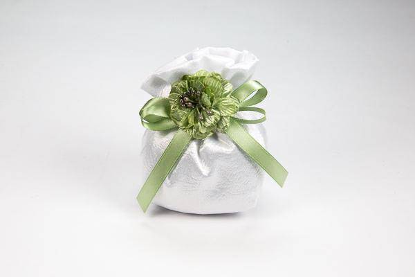 Sacchetto MATRIMONIO in tessuto goffrato completo di confetti cm 13 x 11