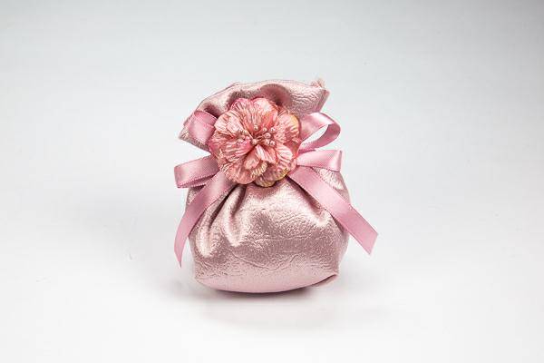 Sacchetto matrimonio in tessuto goffrato rosa antico cm. 13 x 11 h