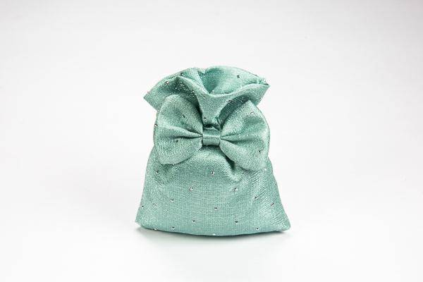 Sacchetto matrimonio in tessuto con strass e fiocco cm. 10 x 12 h