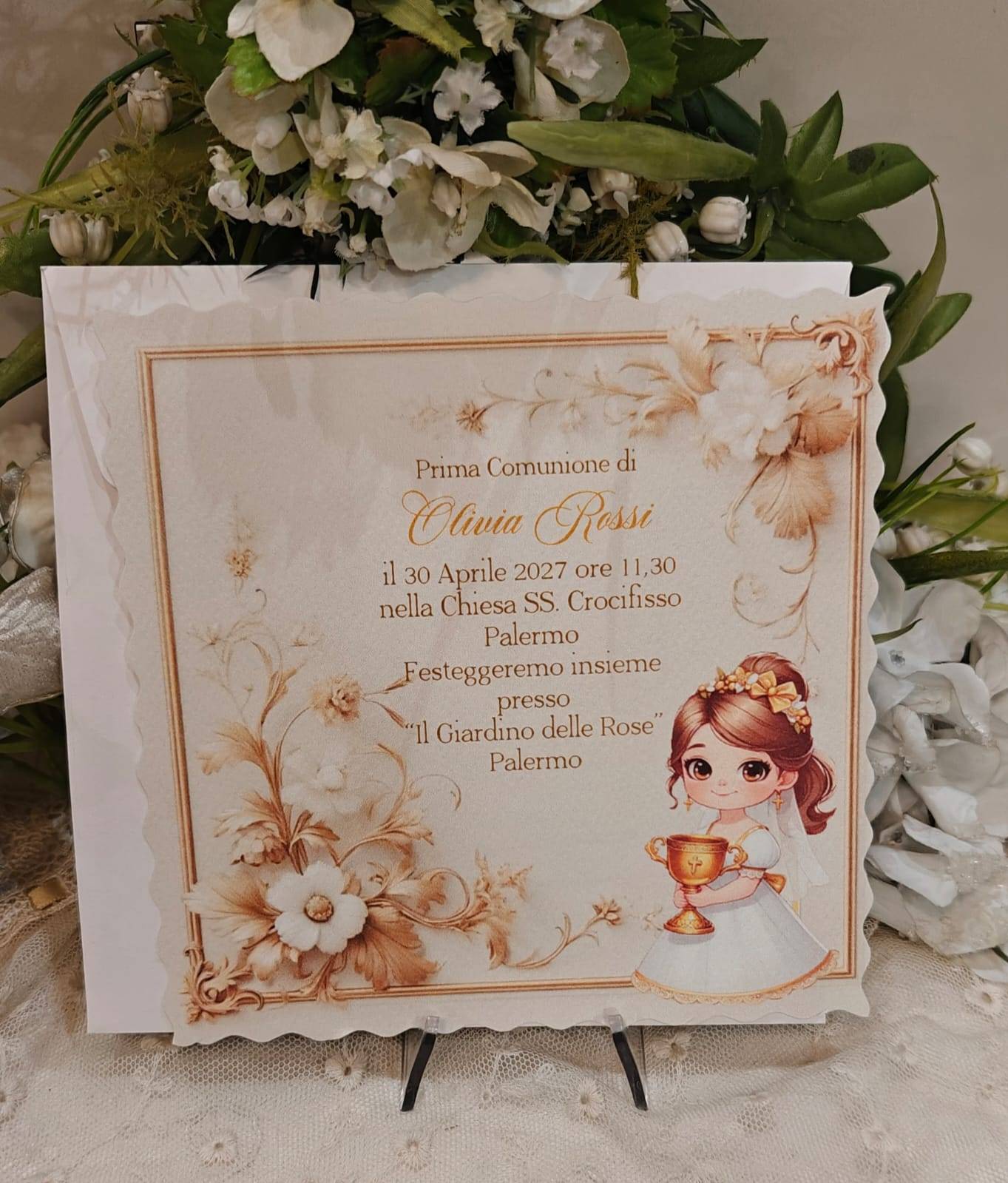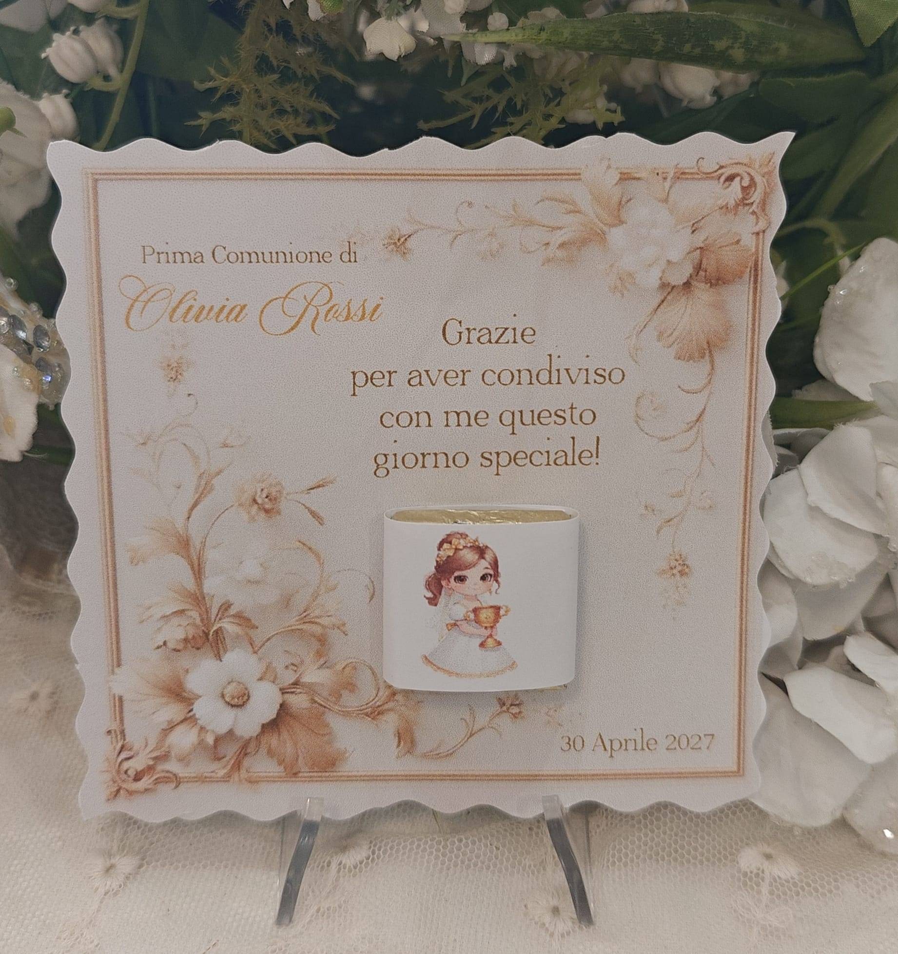 Segnaposto personalizzato Prima Comunione cm 12 x 12 con cioccolatino