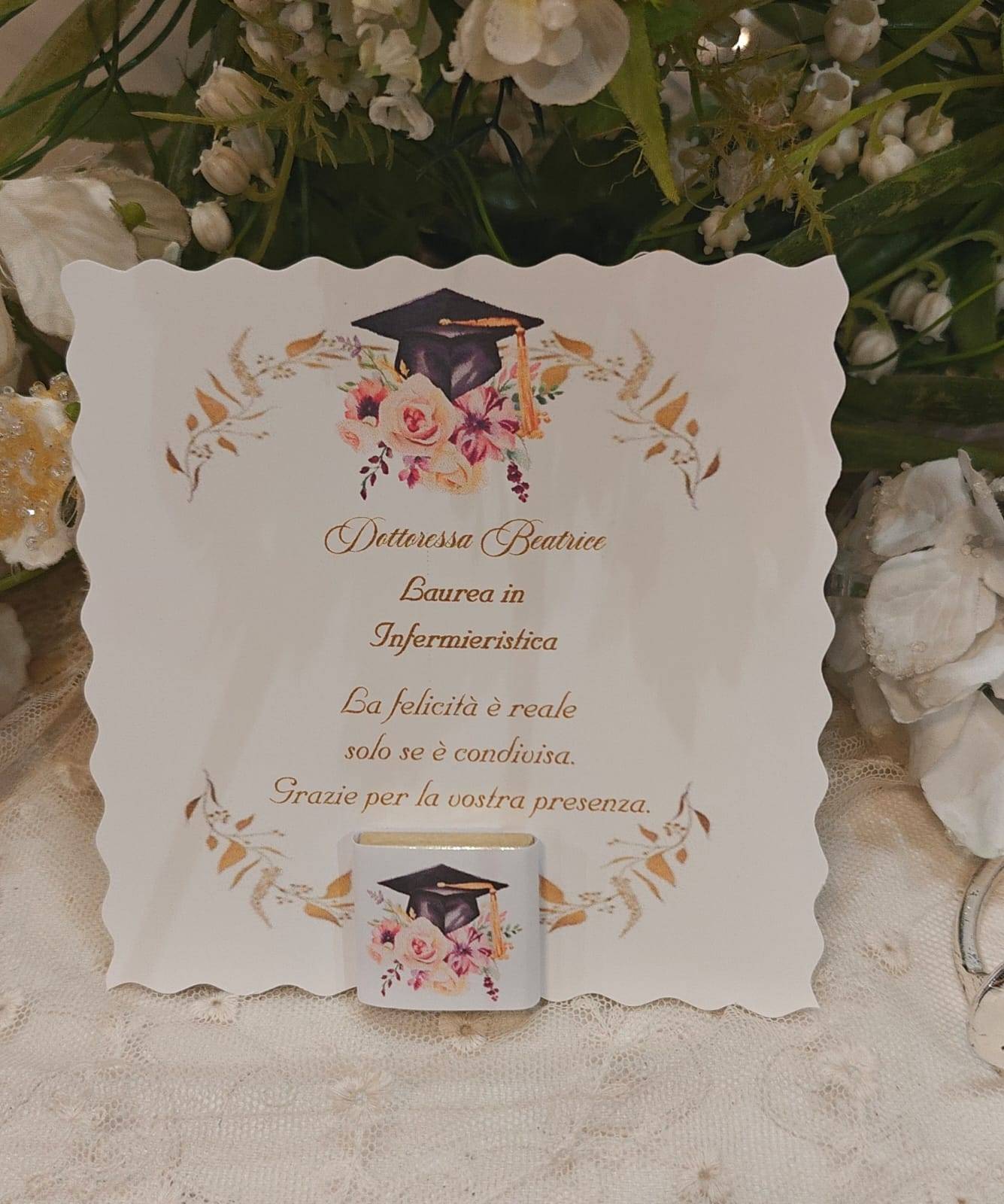 Segnaposto personalizzato laurea cm 12 x 12 con cioccolatino