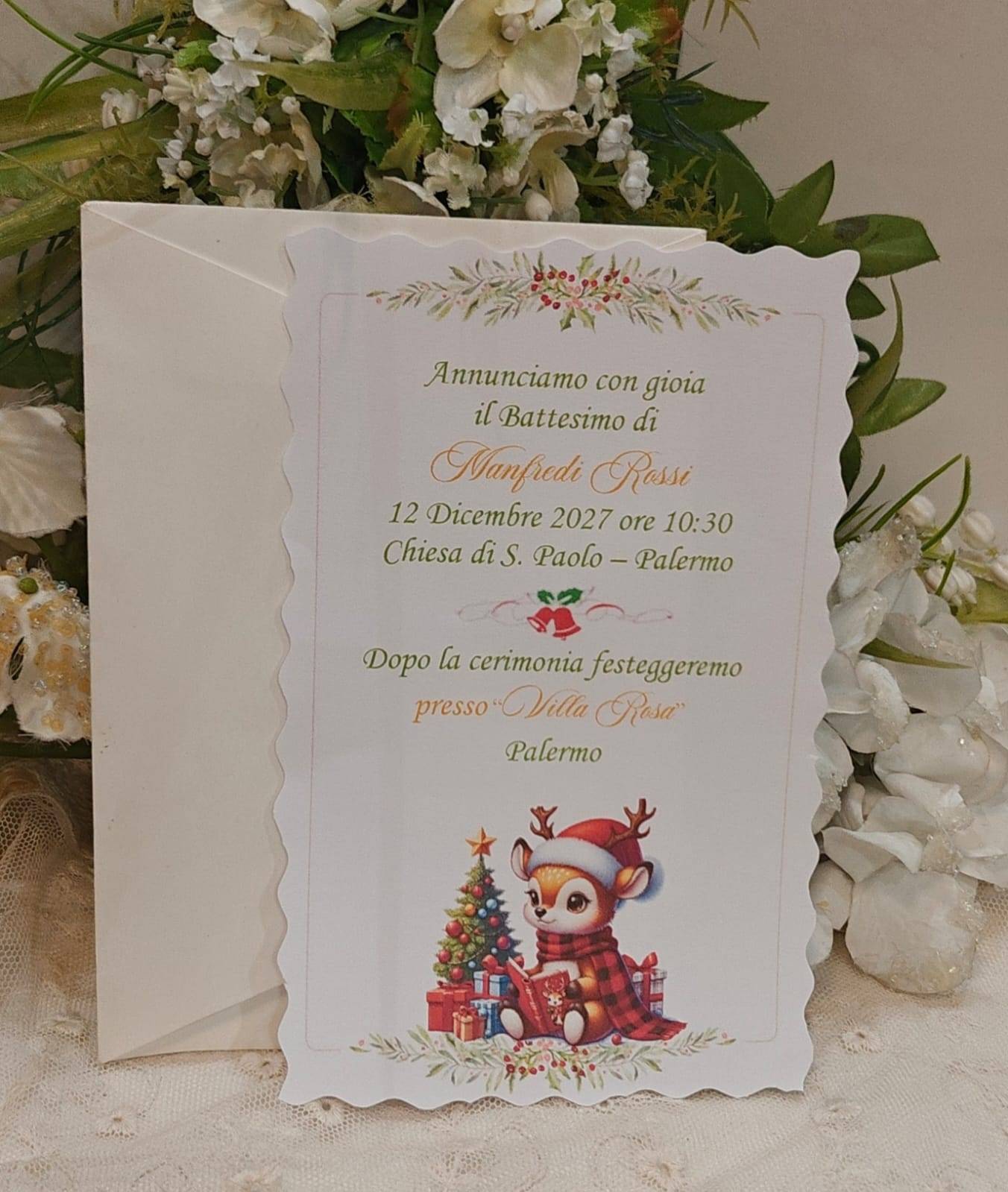 Invito Battesimo natalizio completo di busta 11,5 x 17