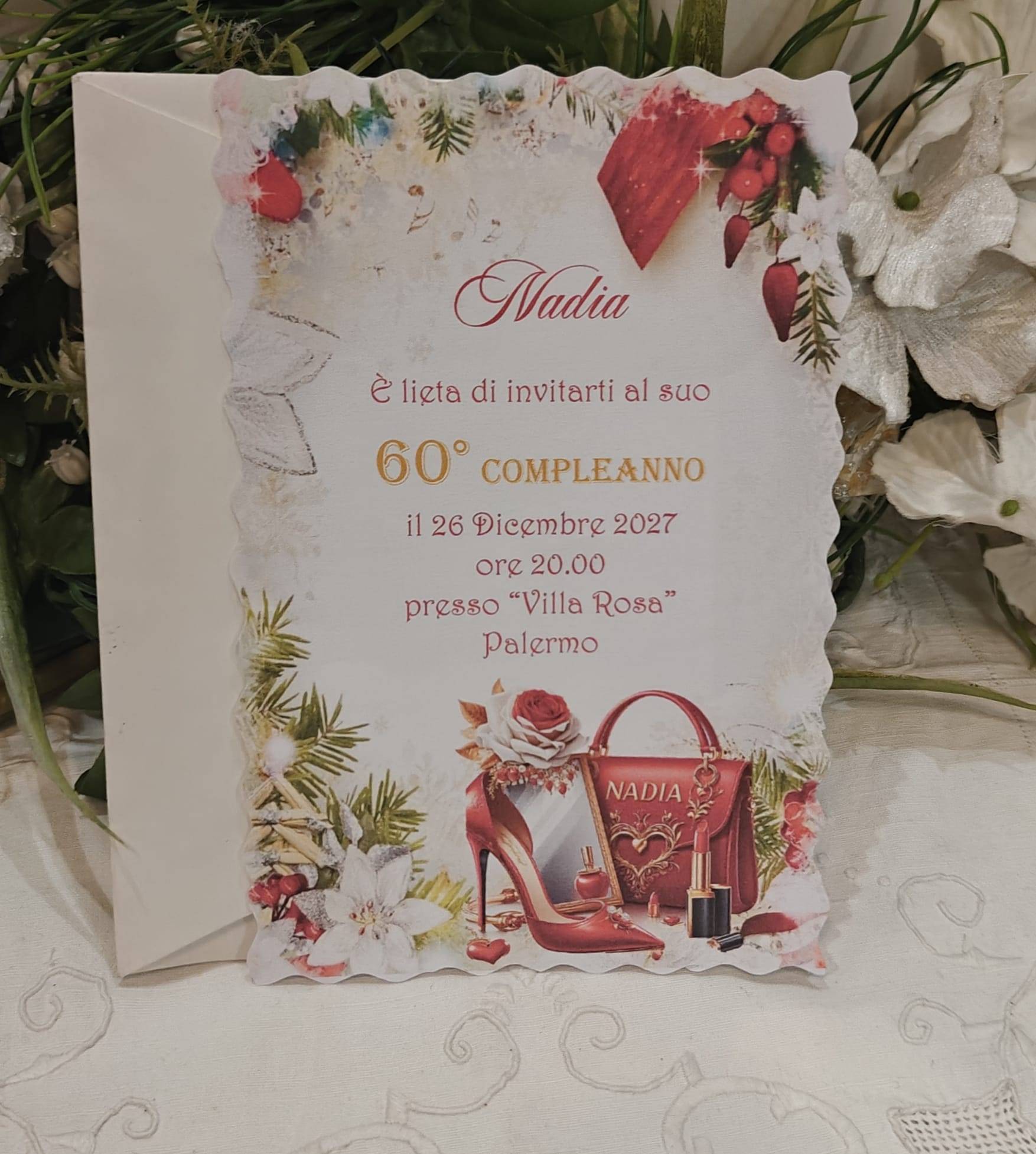 Invito personalizzato Compleanno 60 anni. Realizzato in cartoncino lucido gr. 200.