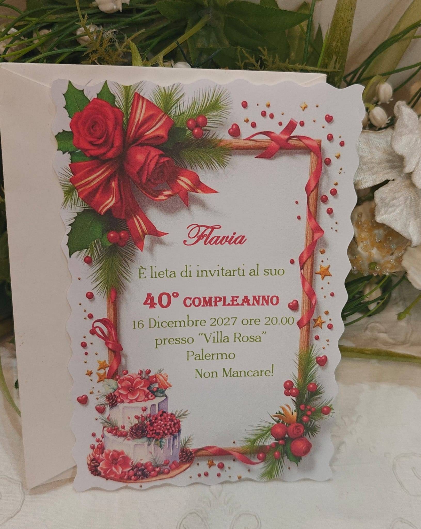Invito personalizzato Compleanno 40 anni. Realizzato in cartoncino lucido gr. 200.