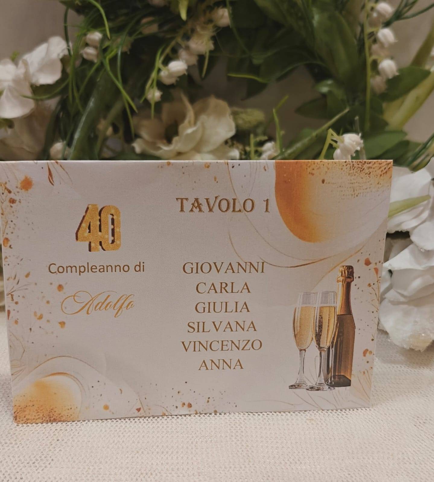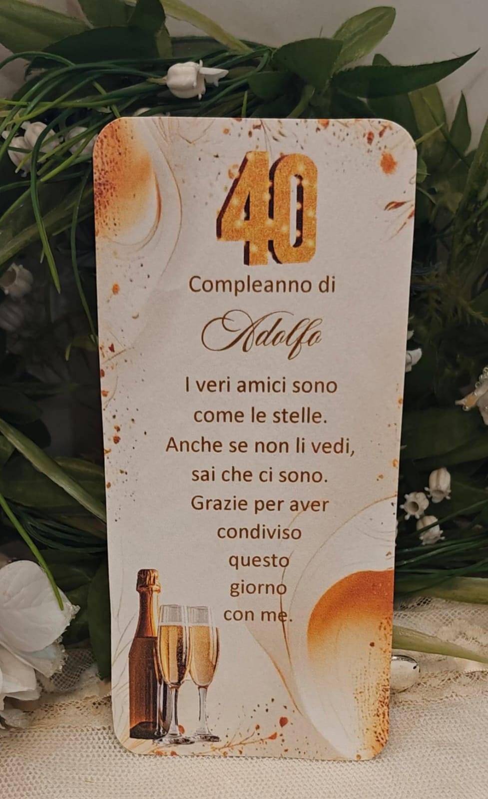 Invito personalizzato Compleanno 40 anni. Realizzato in cartoncino lucido gr. 200.