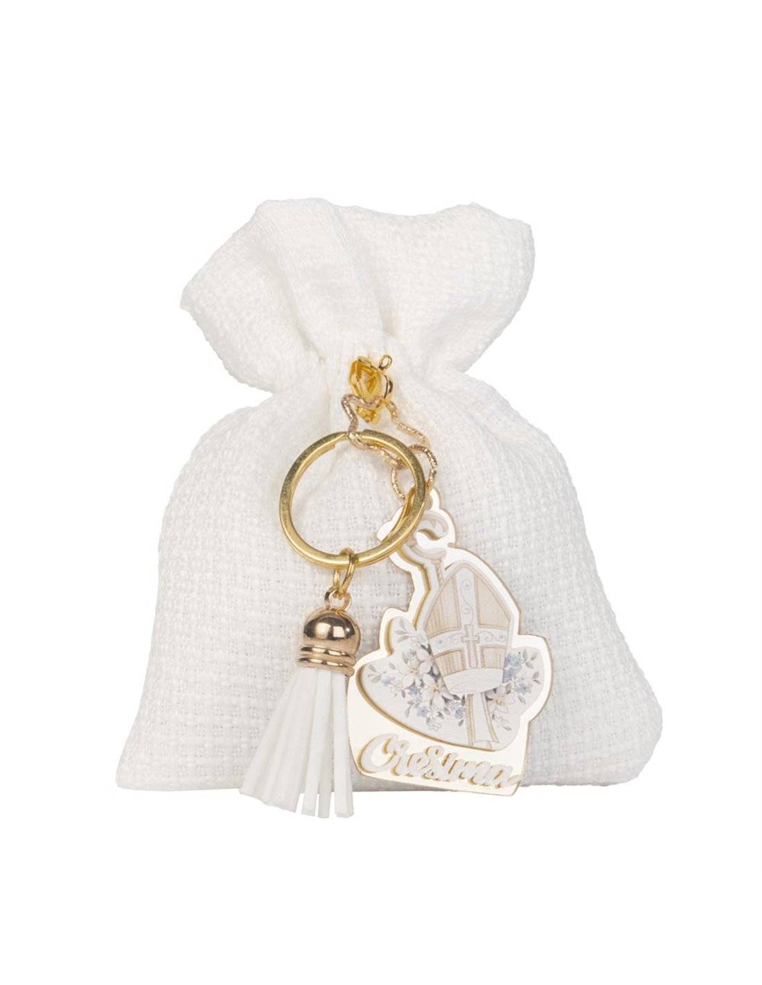 SACCHETTO CRESIMA CON PORTACHIAVI CON CONFETTI