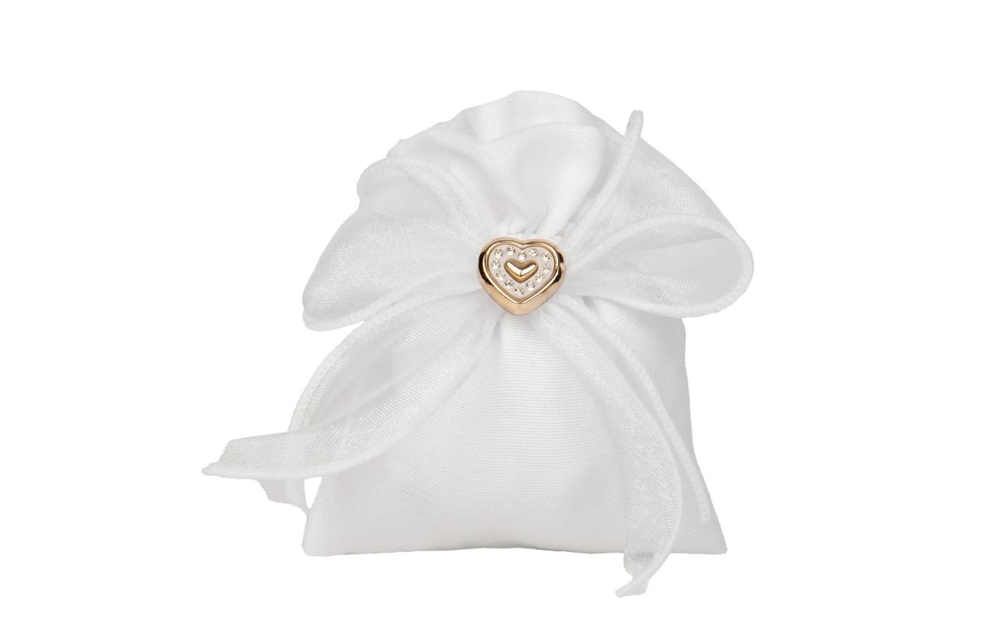 Sacchetto matrimonio con fiocco e applicazione cuore con strass cm. 8 x 10 h