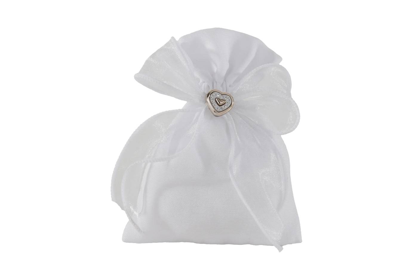 Sacchetto matrimonio con fiocco e applicazione cuore con strass cm. 10 x 12 h