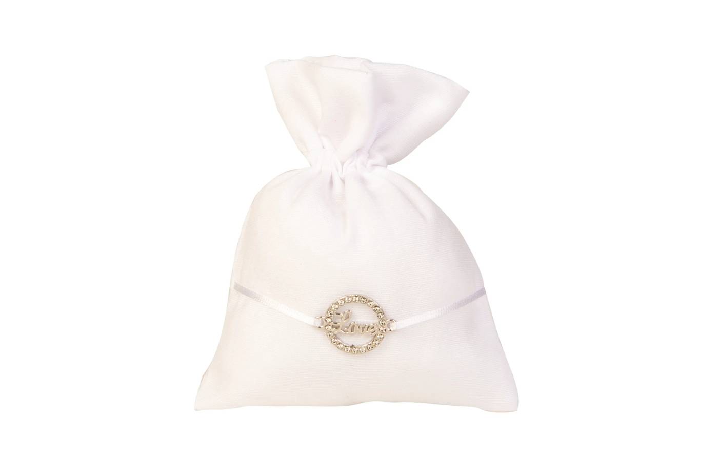 Sacchetto matrimonio bianco con applicazione silver love cm. 10 x 12 h