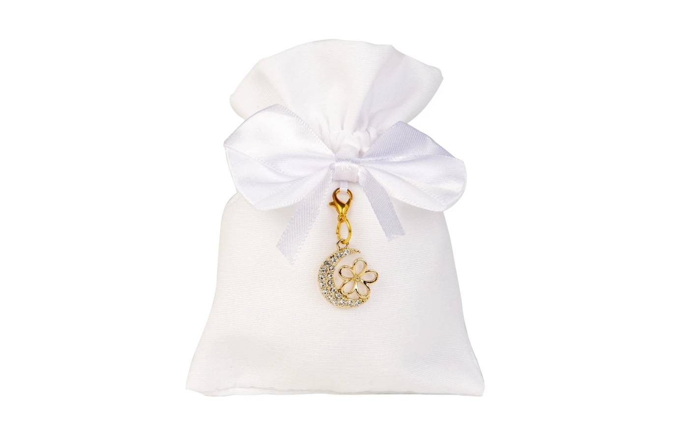 Sacchetto matrimonio bianco con applicazione oro luna cm. 10 x 12 h