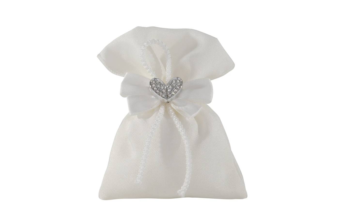 Sacchetto matrimonio bianco con applicazione silver cuore cm. 10 x 12 h