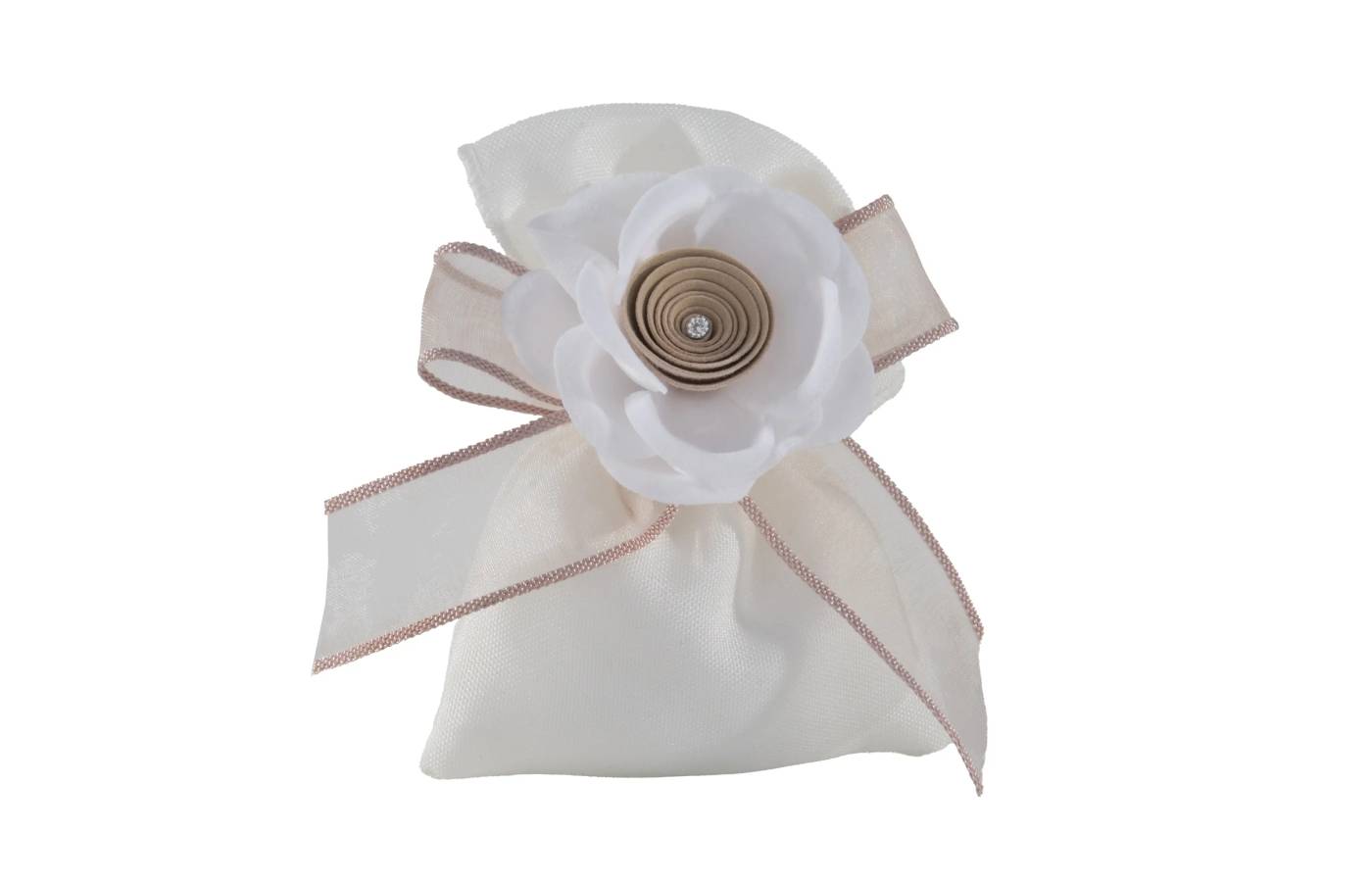 SACCHETTO MATRIMONIO CON FIORE TORTORA