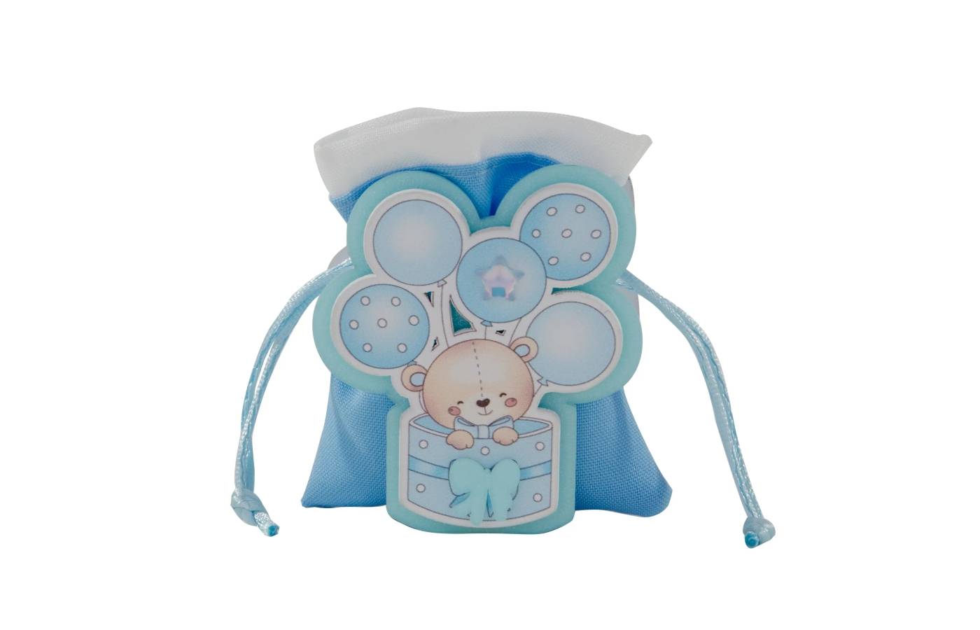 Sacchetto nascita con orsetto palloncini completo di confetti cm. 8