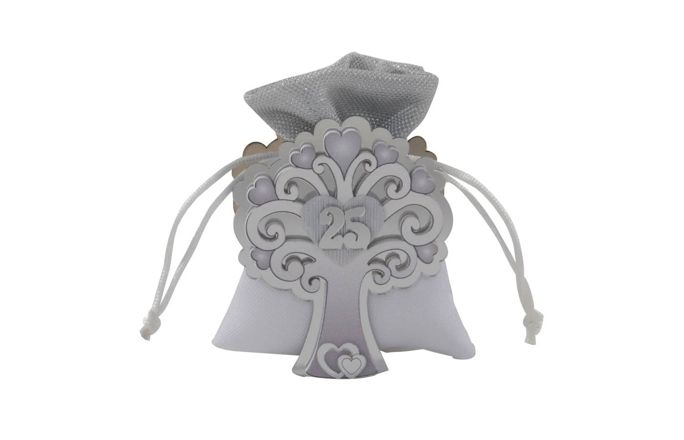 Sacchetto Albero della vita con 25 anniversario e confetti cm.9