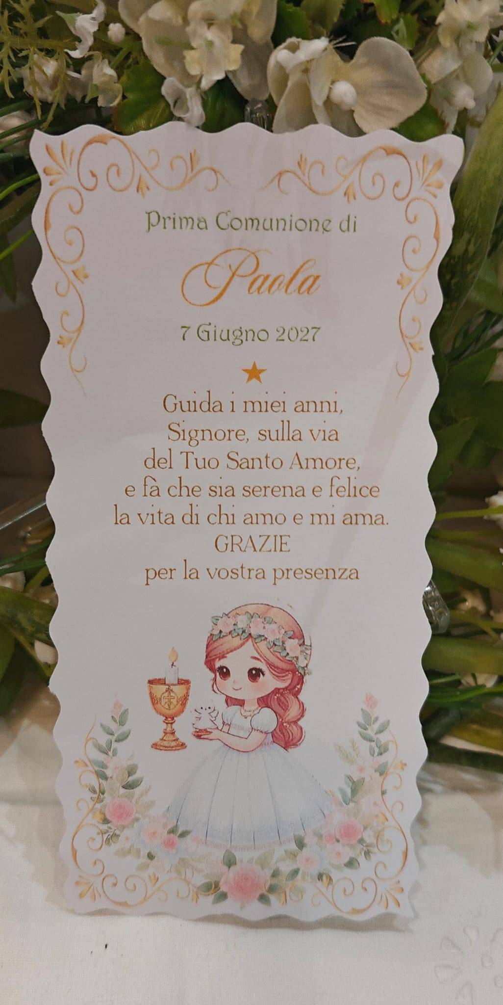 Segnalibro personalizzato Prima Comunione con pensierino da posizionare sopra il tovagliato nella location dove festeggiate le vostre ricorrenze come segnaposto si può aggiungere anche il nome degli invitati.