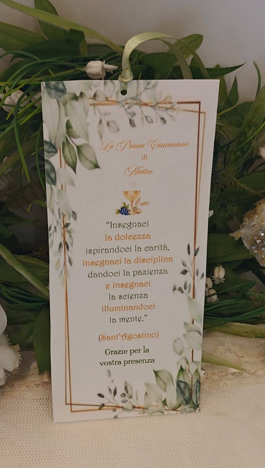 Segnalibro personalizzato Prima Comunione con pensierino da posizionare sopra il tovagliato nella location dove festeggiate le vostre ricorrenze come segnaposto si può aggiungere anche il nome degli invitati.