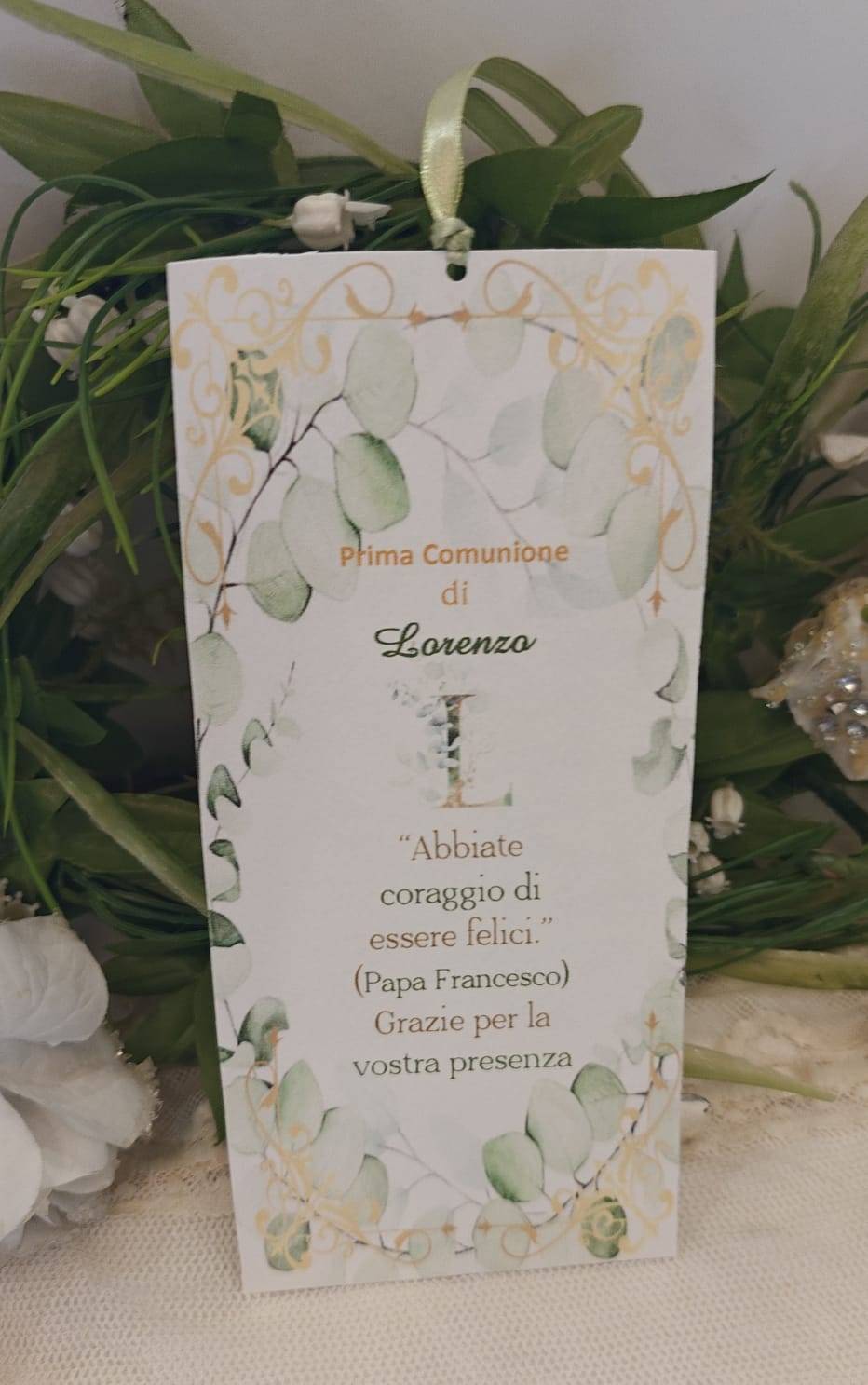 Segnalibro personalizzato Prima Comunione con pensierino da posizionare sopra il tovagliato nella location dove festeggiate le vostre ricorrenze come segnaposto si può aggiungere anche il nome degli invitati.