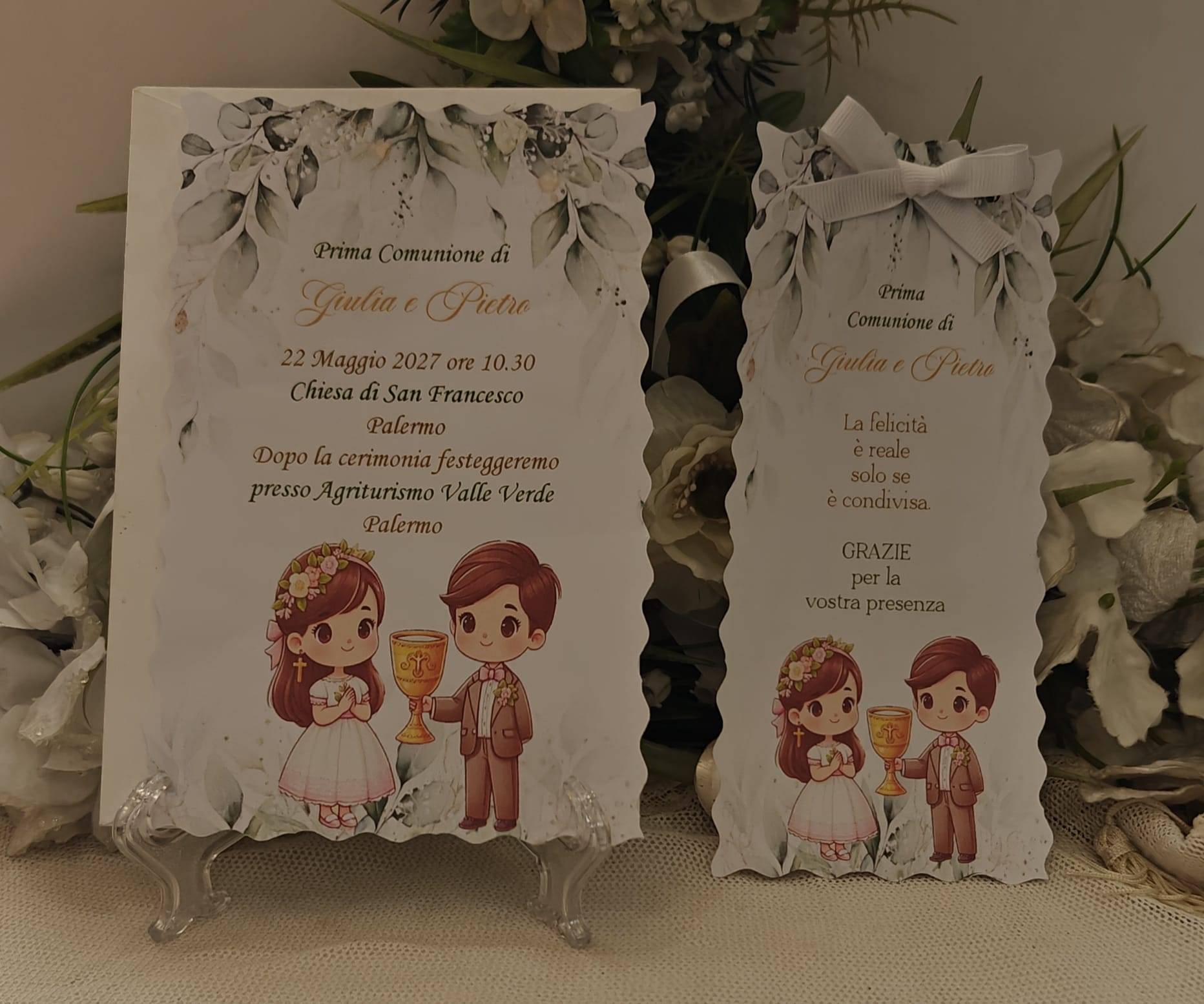 SEGNALIBRO PRIMA COMUNIONE GEMELLI