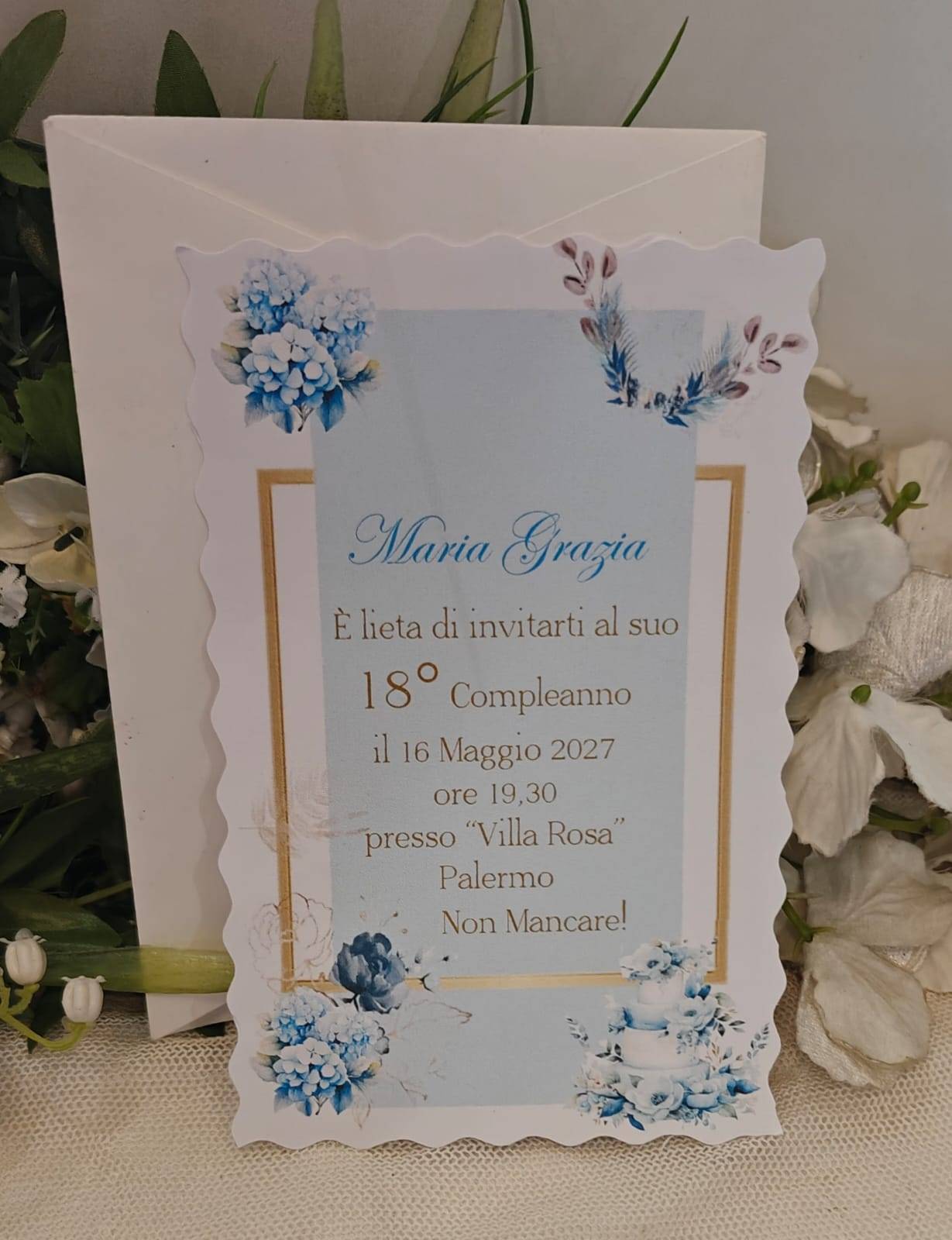Invito personalizzato Compleanno. Realizzato in cartoncino martellato gr. 200.