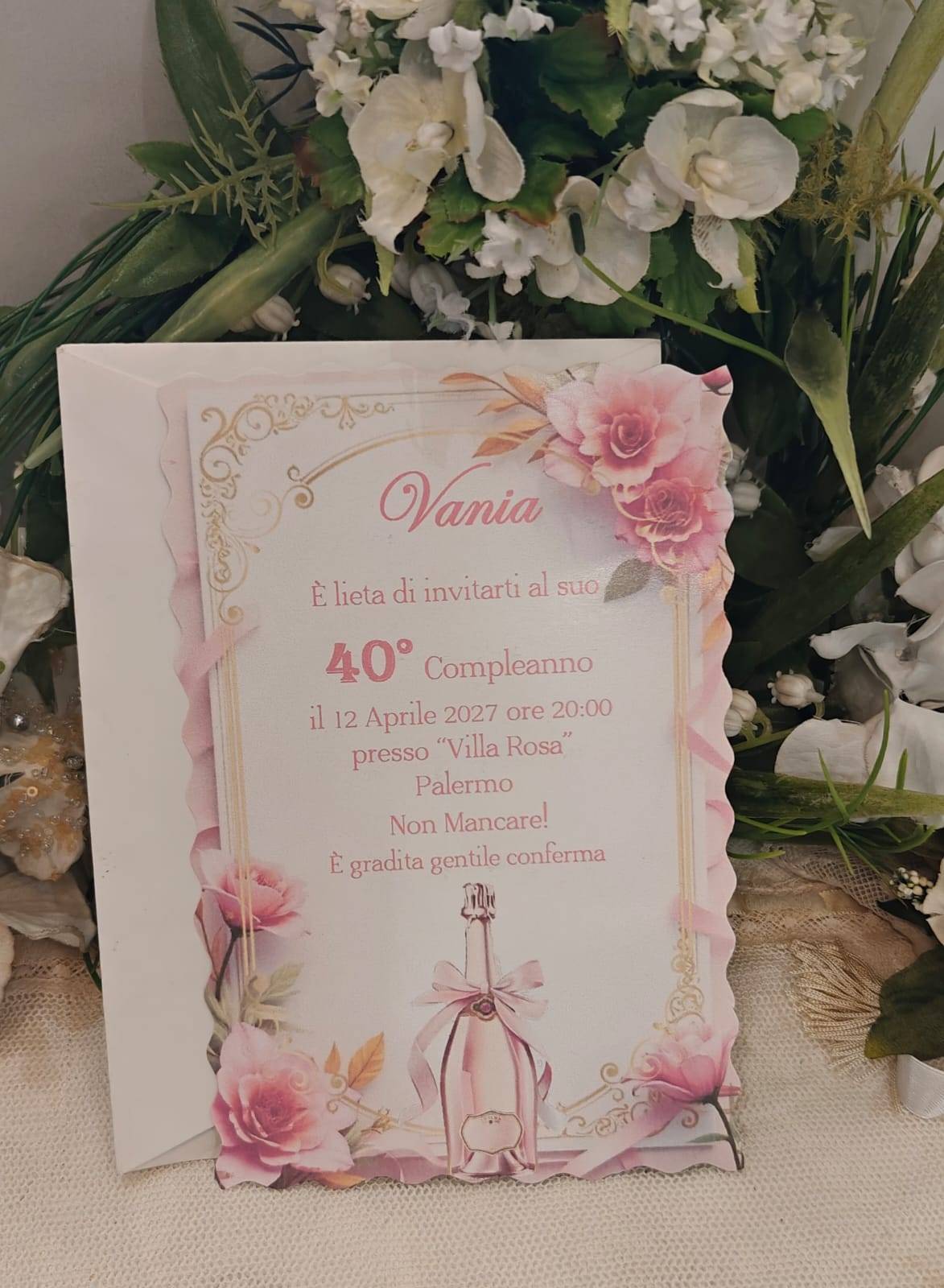 Invito personalizzato Compleanno 40 anni. Realizzato in cartoncino lucido gr. 200.